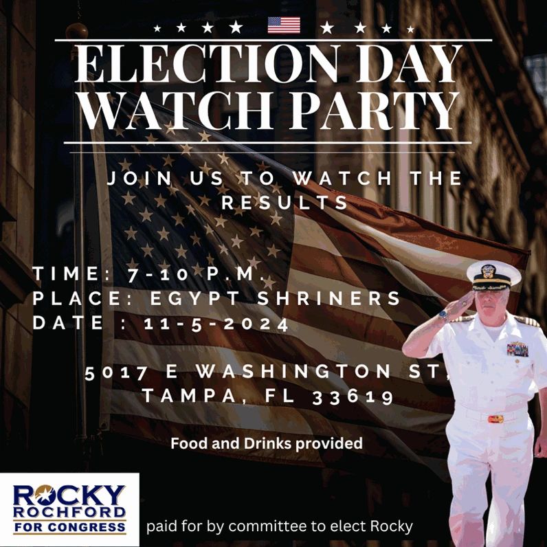 Join us for Rocky Rochford's Election Night Watch Party! Come hang out with supporters, watch the results roll in, and cheer on Rocky’s campaign together. It's a great chance to connect, enjoy some refreshments, and share in the excitement. Don’t miss it!